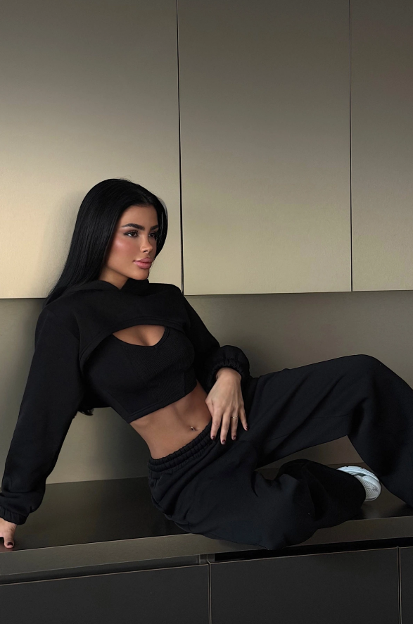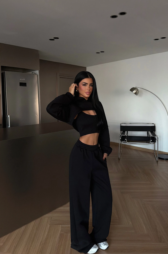 Minimalistyczny trzyczęściowy set, który pracuje na sylwetkę. Miękki, elastyczny materiał z efektem soft fit dopasowuje się do ciała, zapewniając komfort i czystą formę. Top, bolerko i spodnie tworzą spójną całość — idealną na co dzień, w podróży i w stylizacjach off-duty.