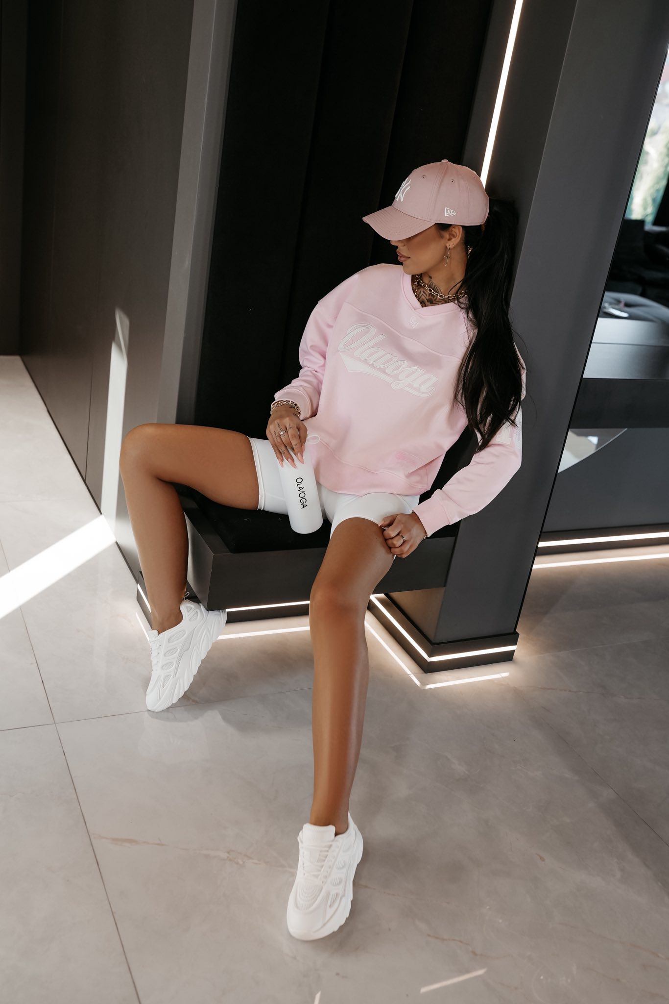 Bluza dresowa z miękkiej dzianiny, krój swobodny z obniżoną linią ramion, model z logo OLAVOGA z przodu oraz dużym printem „OLV 15” z tyłu, wykończona ściągaczami i naszywką z logo.