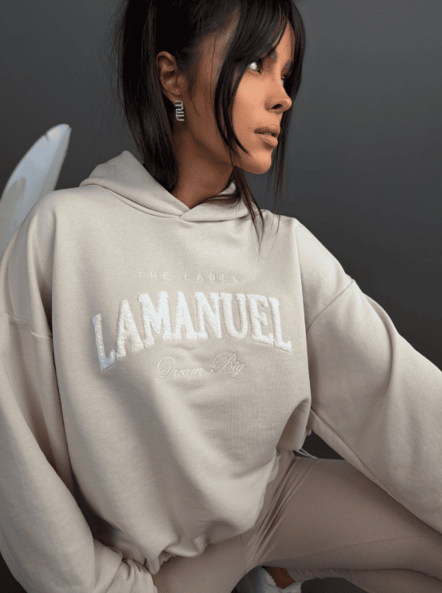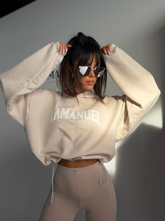 Długa bluza z kapturem o swobodnym kroju, wykończona gumkami, które pozwalają regulować jej długość i nadać sylwetce luźny, lekko sportowy kształt. Miękka, grubsza dzianina przyjemnie otula i sprawia, że model idealnie sprawdza się na co dzień. Na froncie wyraziste, wypukłe logo z haftem przyciąga uwagę i podkreśla charakter kolekcji. Obniżona linia ramion i szerokie rękawy budują nonszalancki look, który świetnie łączy wygodę z miejskim stylem.
