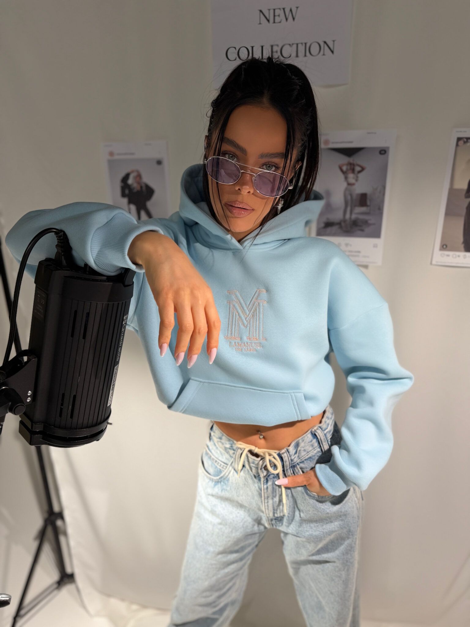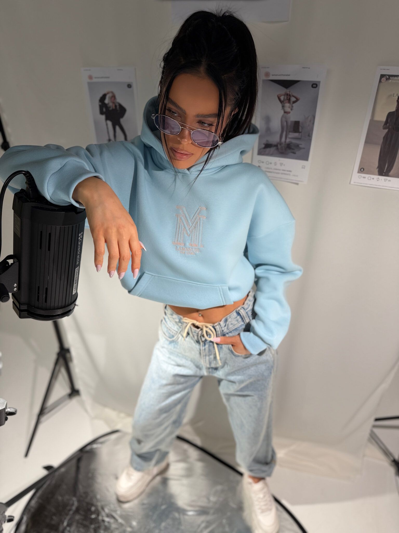 Bluza z kapturem w klasycznej długości, ale z mocnym akcentem w postaci dużego haftu z przodu. Litera M z nazwą marki wpisana w minimalistyczną formę przyciąga uwagę, ale nadal pozostaje spójna z codziennym stylem. Materiał ma gładką, lekko matową powierzchnię i wyczuwalną grubość – miękki od środka, ale z konstrukcją, która nie opada. Kieszeń typu kangurka dodaje luzu i funkcjonalności. Rękawy z szerokimi mankietami, kaptur bez zbędnych dodatków. Idealna do jeansów, joggerów albo jako kontrast dla bardziej dopracowanych dołów. Kolory? Przemyślane, ale z charakterem.