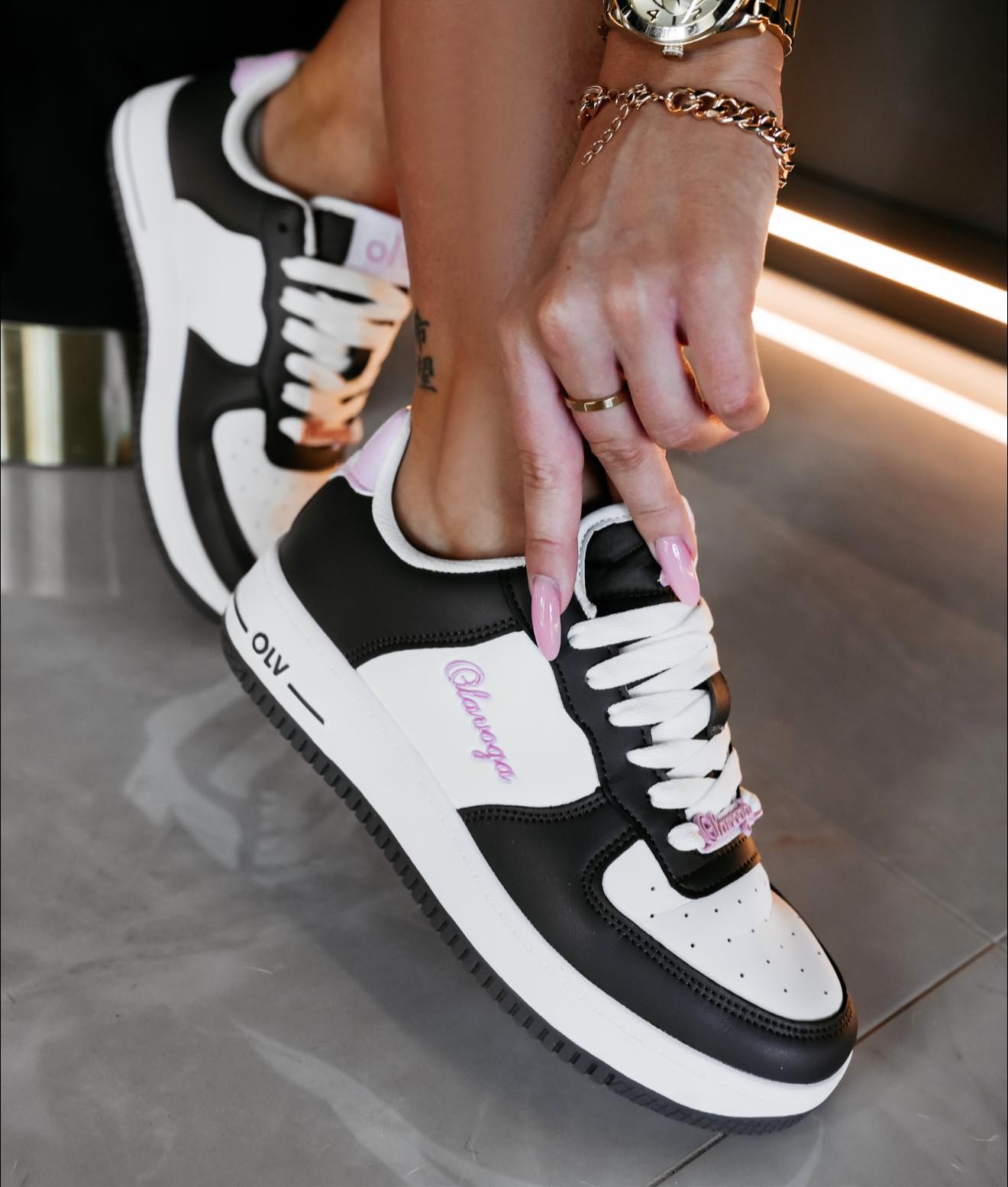 Sneakersy o niskim profilu. Cholewka z gładkiego materiału. Perforowany przód. Klasyczne sznurowanie. Miękka wyściółka i stabilna, płaska podeszwa. Logo w formie naszywanych detali oraz subtelnych tłoczeń.