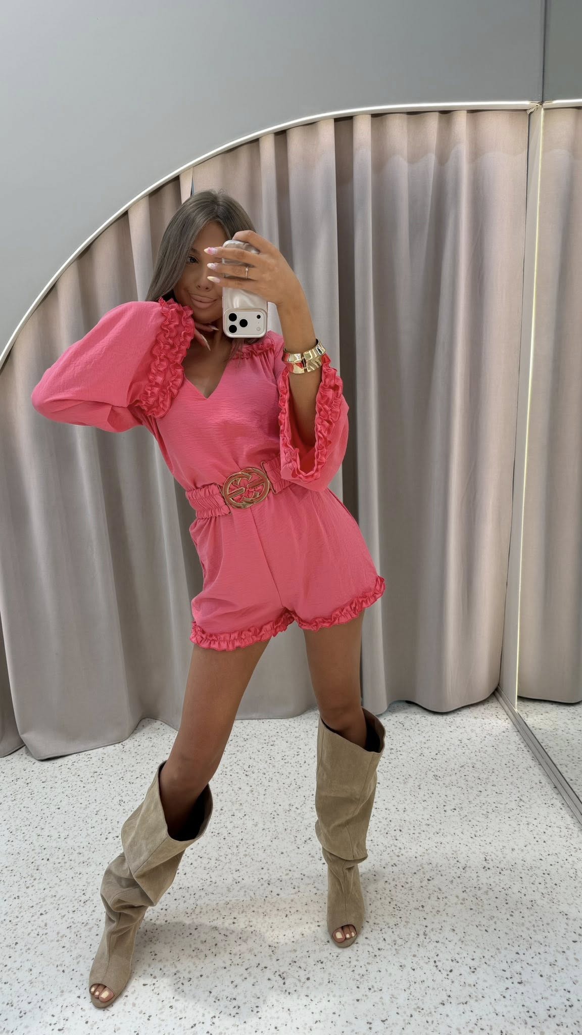 Kombinezon SORELLE z uroczymi falbankami to idealny wybór, jeśli chcesz wyglądać stylowo i kobieco. Pasek pięknie podkreśla talię, a możliwość noszenia go na dwa sposoby daje Ci pełną swobodę stylizacji. Dostępny w rozmiarach S i M – zakochasz się od pierwszego założenia! ✨