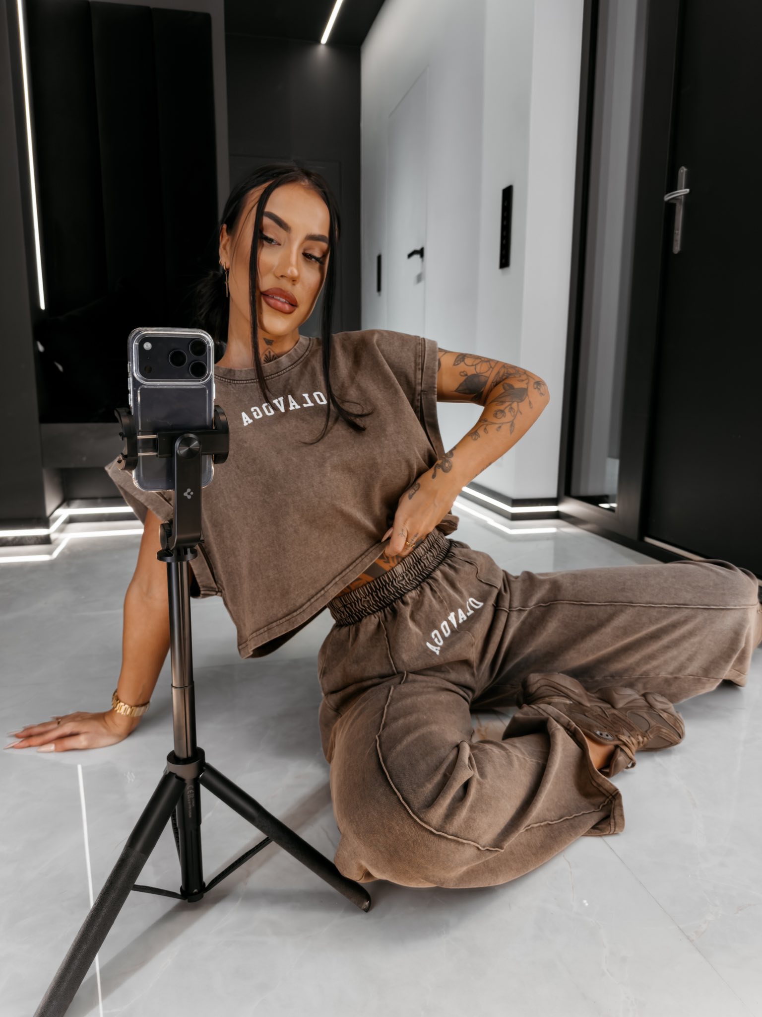 Komplet damski washed dekatyzowany LENCI Ola Voga ciemny brąz