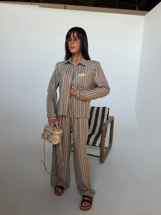 Komplet w paski elegancki len SEMPE La Manuel cappucino