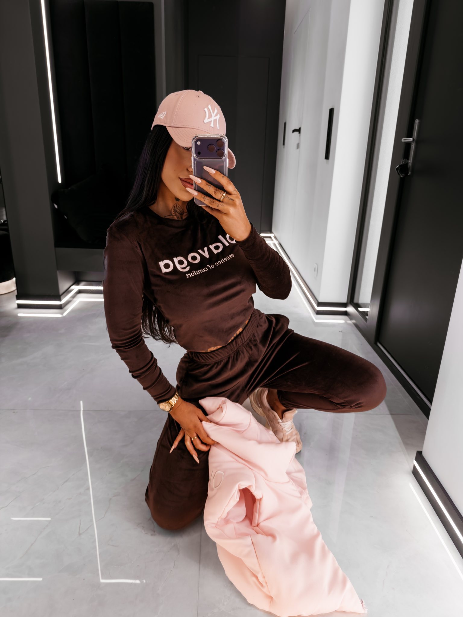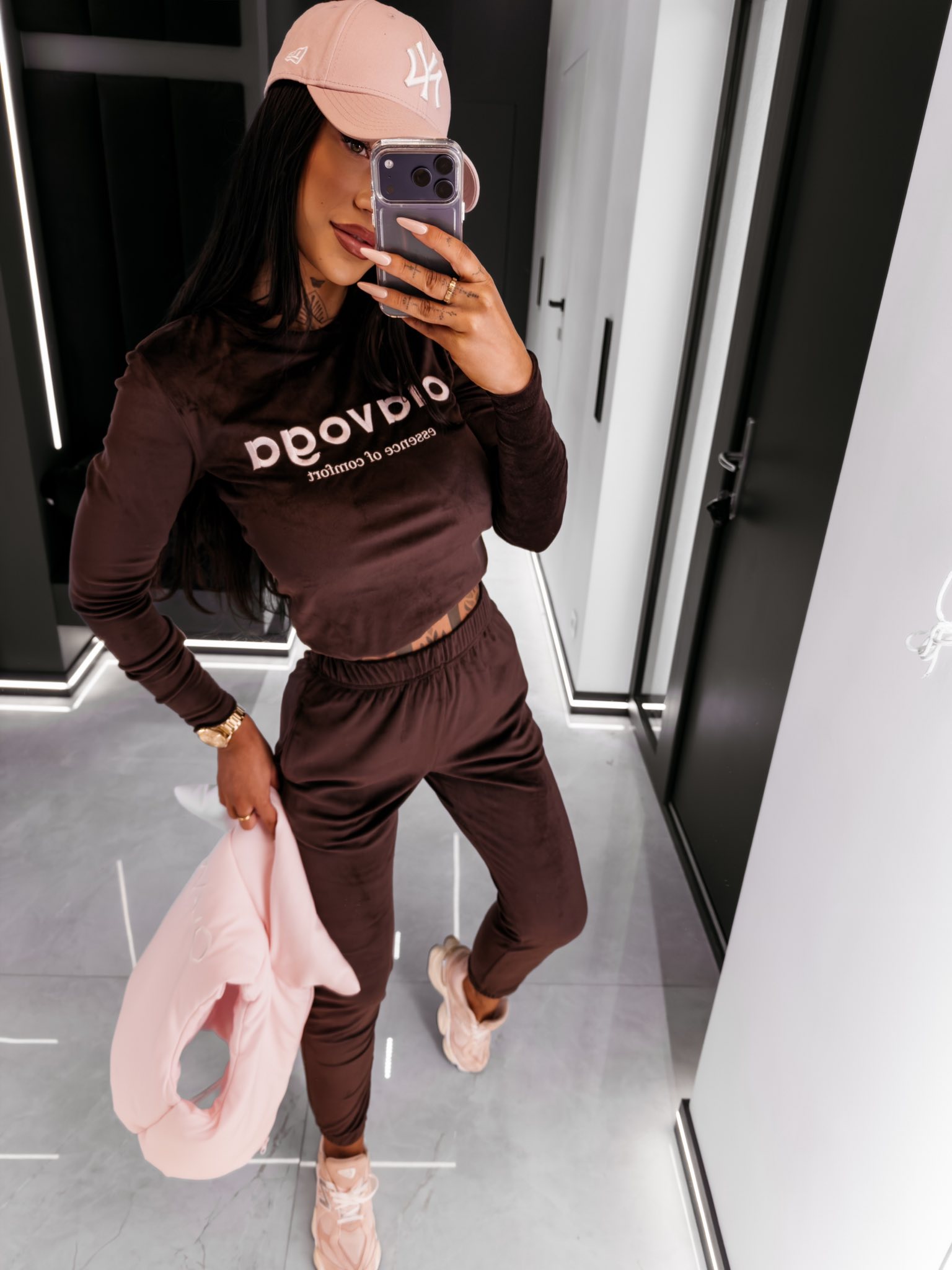 Komplet welurowy SELIRA Ola Voga różowy
