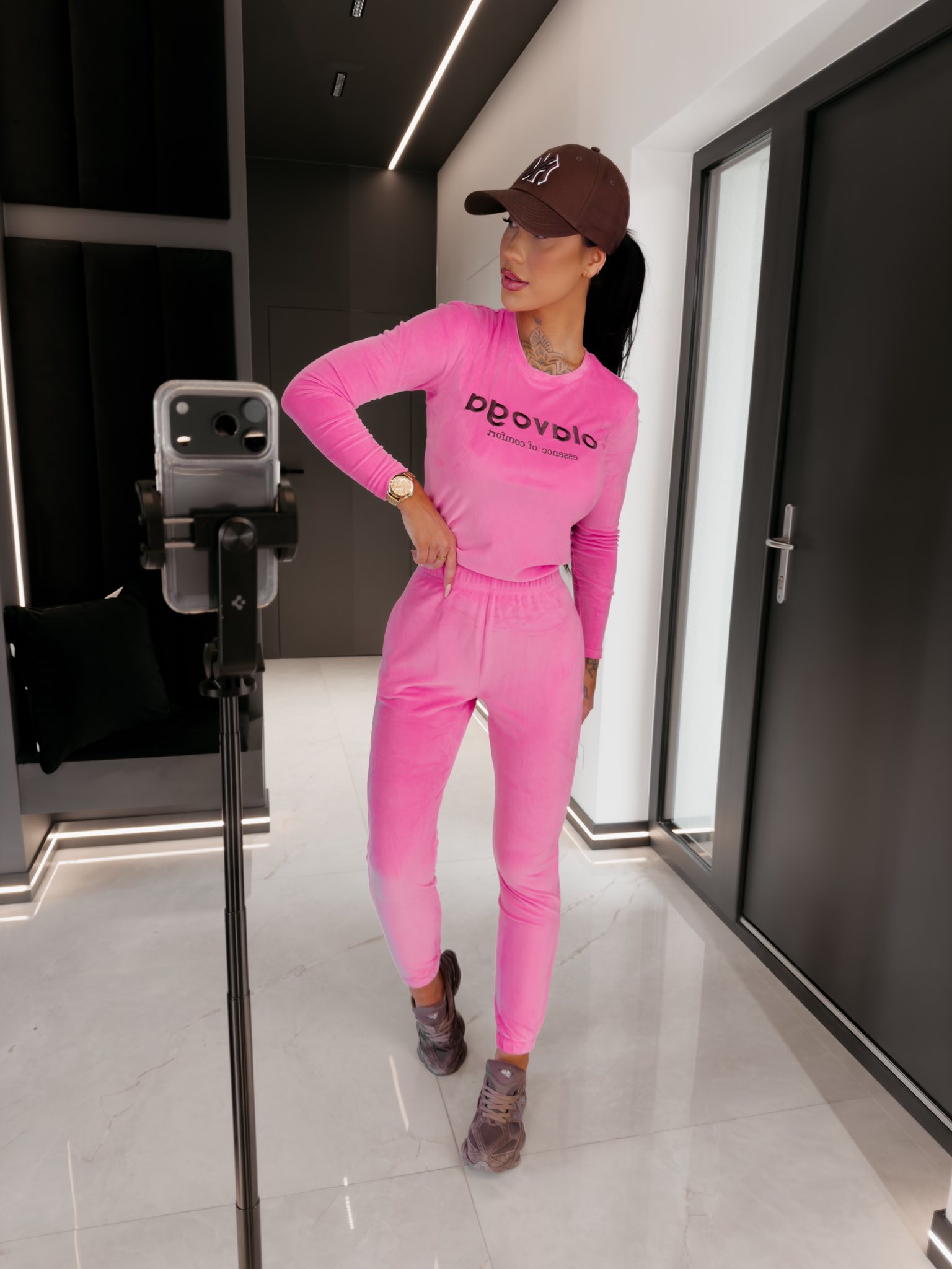 Komplet welurowy SELIRA Ola Voga różowy