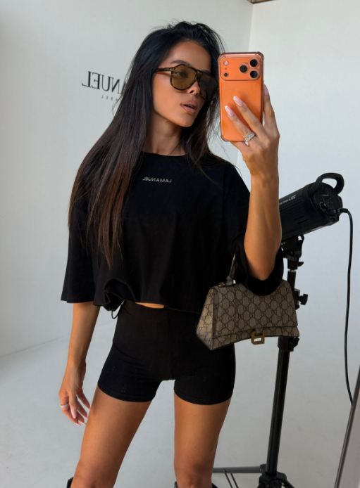 Czysta forma, która daje pełną swobodę stylizacji. T-shirt o luźnym kroju można regulować w talii, dzięki czemu zmienia swój charakter – od oversize’u po bardziej dopasowaną linię. Minimalistyczne wykończenie i delikatne logo podkreślają estetykę premium. Kolarki idealnie przylegają do sylwetki, eksponując nogi i zapewniając wygodę przez cały dzień. Zestaw, który wygląda lekko, nowocześnie i zawsze na czasie.