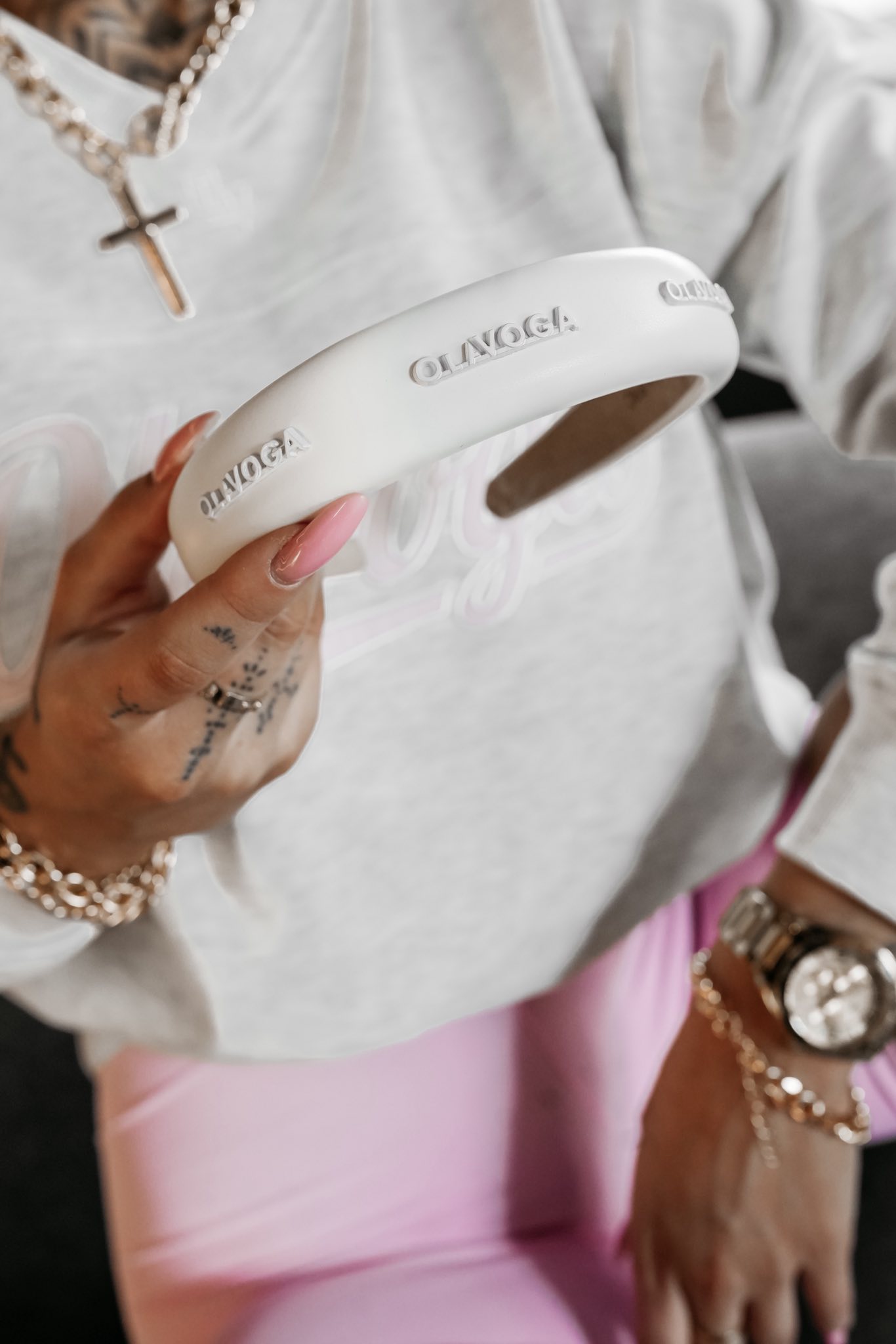 Minimalistyczna nowoczesna forma - gładka powierzchnia z subtelnym logowaniem w kolorze opaski