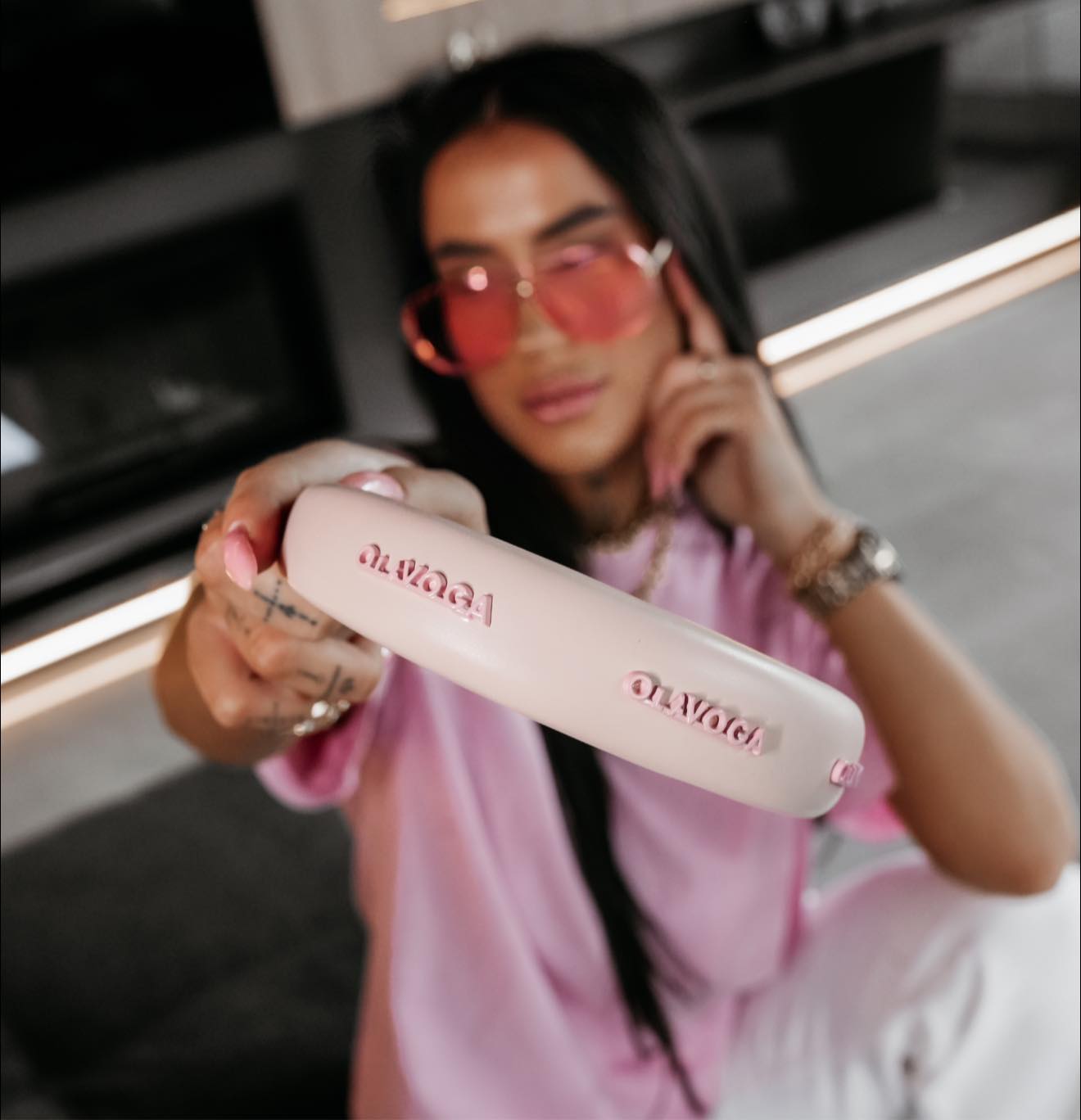 Minimalistyczna nowoczesna forma - gładka powierzchnia z subtelnym logowaniem w kolorze opaski