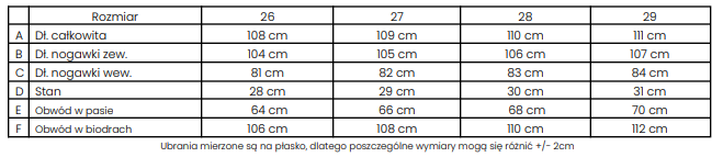 26 - XS, 27 - S, 28 - M, 29 - L