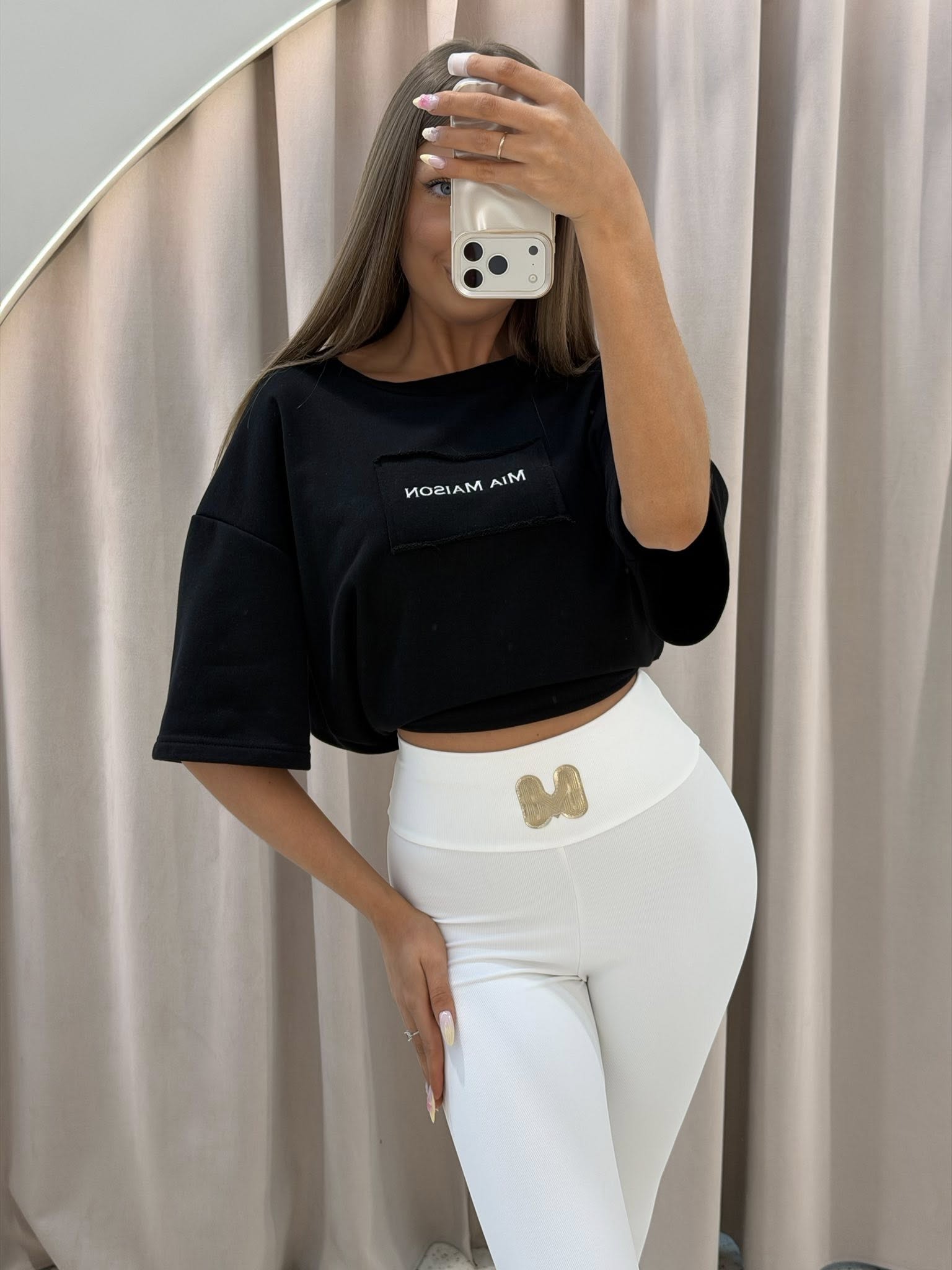 T-shirt bawełniany MAISON Mia Maison z troczkami czarny