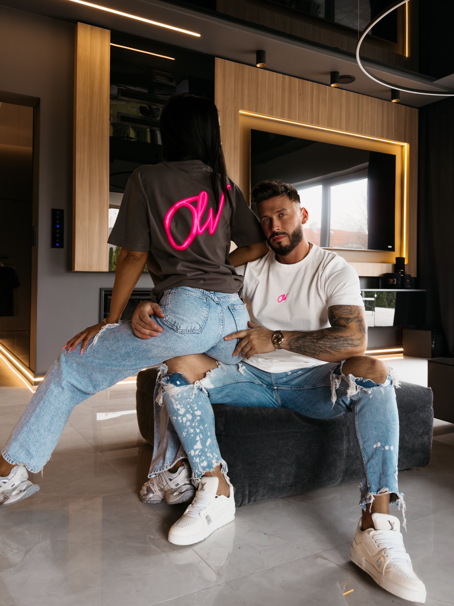 Fason oversize - model unisex - krótki rękaw - klasyczny okrągły dekolt - wysokogatunkowa bawełna - obniżona linia ramion - wyrazisty detal na przodzie i tyle t-shirtu z logotypem brandu w ekspresyjnym kontrastującym kolorze