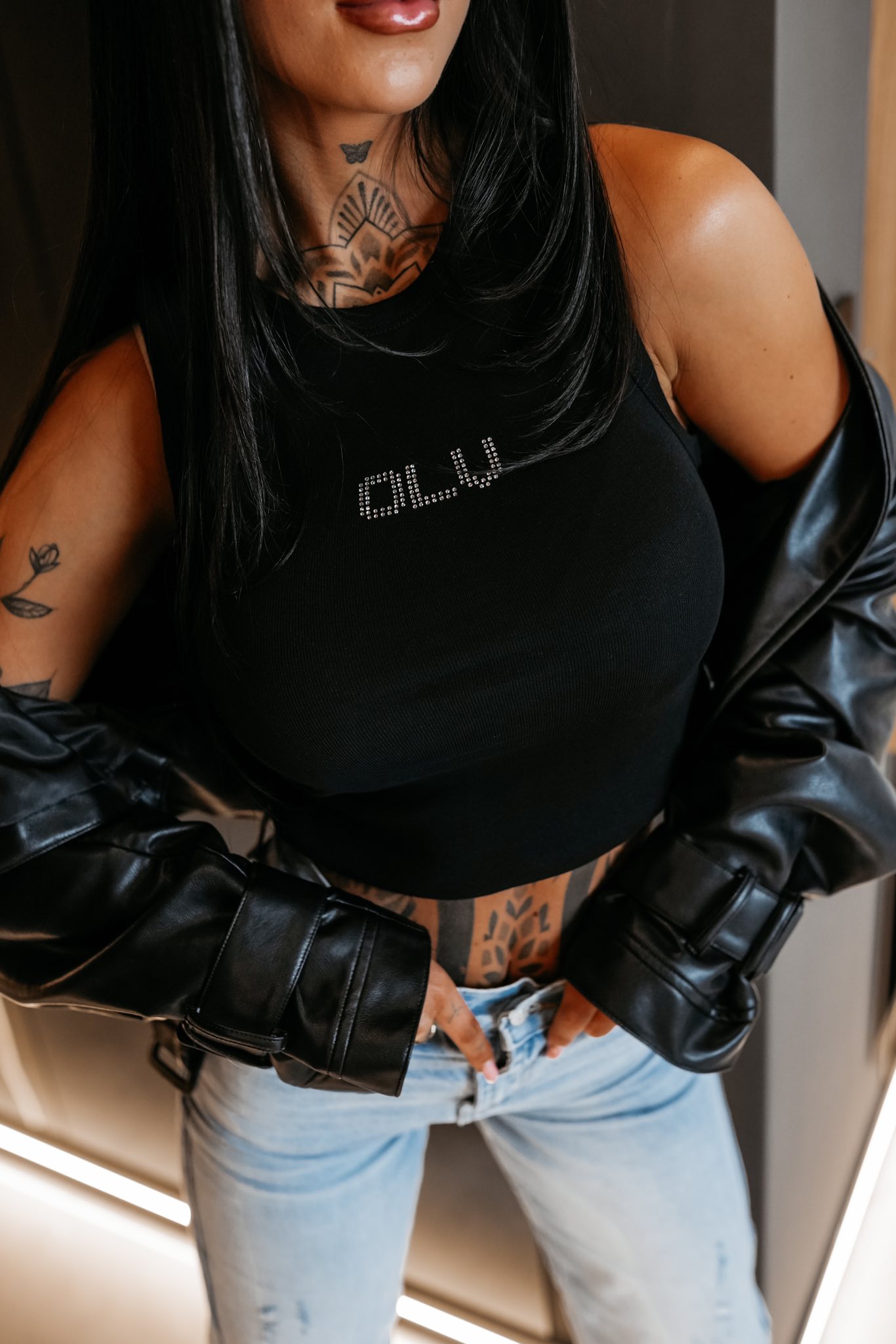 Top damski z kryształkami STONY TOP Ola Voga czarny