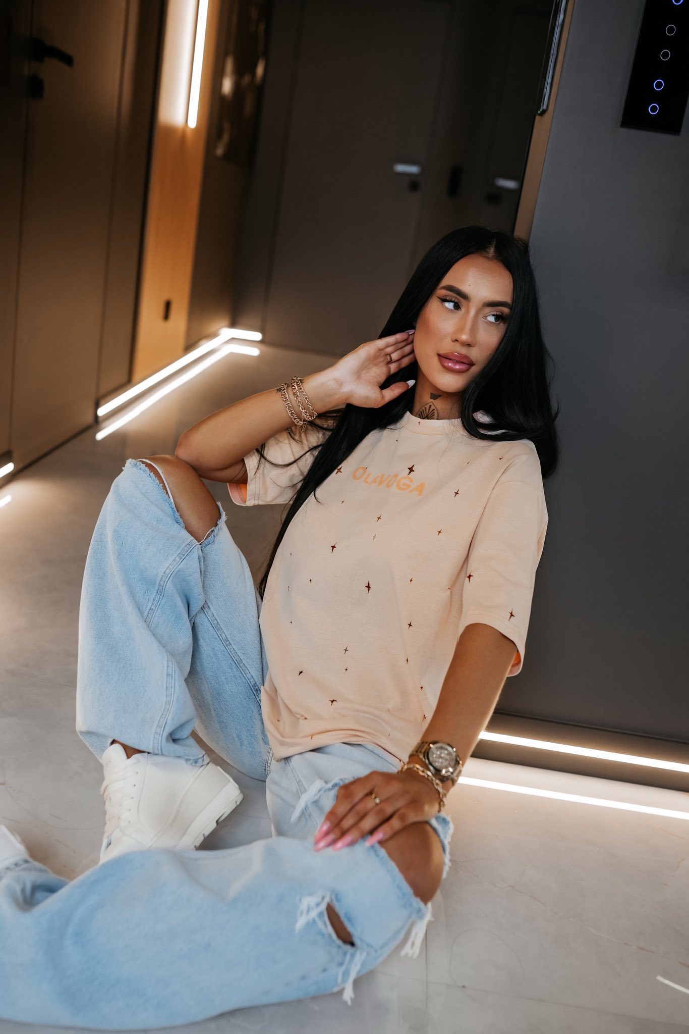 Tshirt damski oversize gwiazdki dziurki FIOVIIST Ola Voga różowy