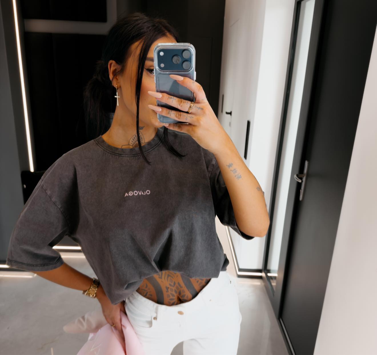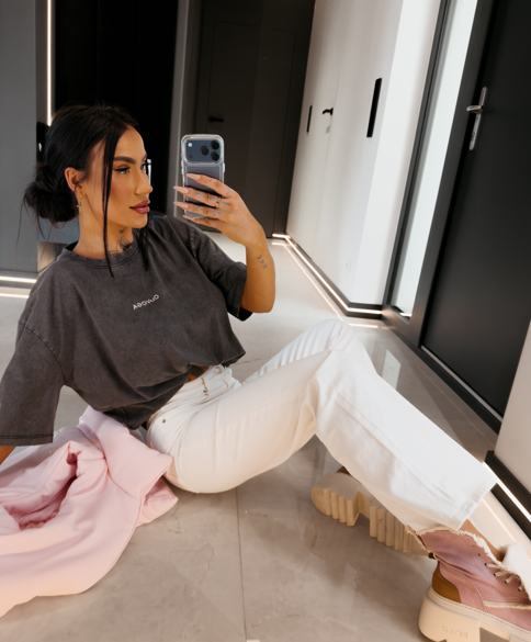 Tshirt damski regular fit ENORAI Ola Voga ciemny szary