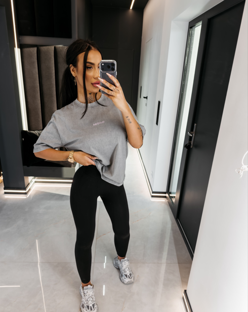 Fason regular fit - wysokogatunkowa tkanina - okrągły dekolt - krótki rękaw o wydłużonej linii i szerszym kroju - z przodu minimalistyczne logo brandu w kolorze różu - na plecach kontrastowy nadruk FASHION MADE ME THIS z logo OLAVOGA - efekt spranego materiału - proste wykończenie dołu